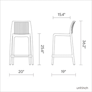 The Milos counter stool has a simple yet elegant design that makes for an extremely comfortable ergonomic sitting piece. The slightly curved back supports you effortlessly while the footrest allows your feet to rest without the worry of scratches or scuff marks. These counter height stools are made of high-quality resin and have anti-skid footpads to protect your floors, while adding stability. Designed with convenience in mind, they are stackable and space saving. Easy to clean, just wipe with water. No assembly required.