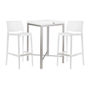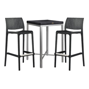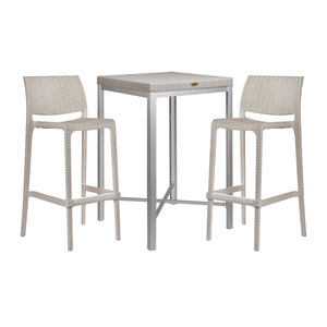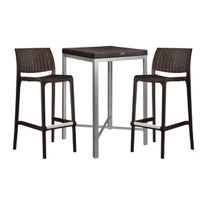 This set includes one Russ rattan bar table and two Rue bar stools — a stylish and practical choice for patios, balconies, kitchen bars, or cafés. With its wicker-look design, durable build, and easy maintenance, it suits both indoor and outdoor use.